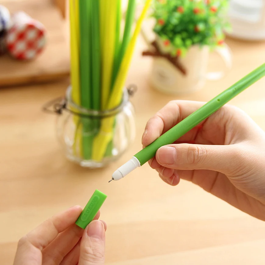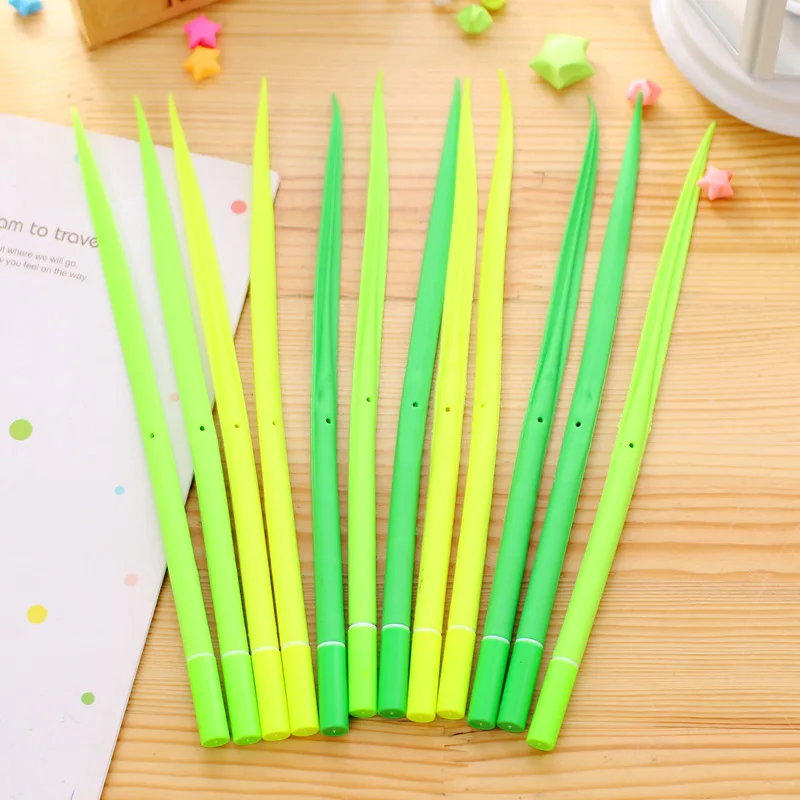 Home Stationery 4 Pcs/Lot Cute Lovely Green-Grass-Shaped Gel Pen for School Stationery & Office Supply